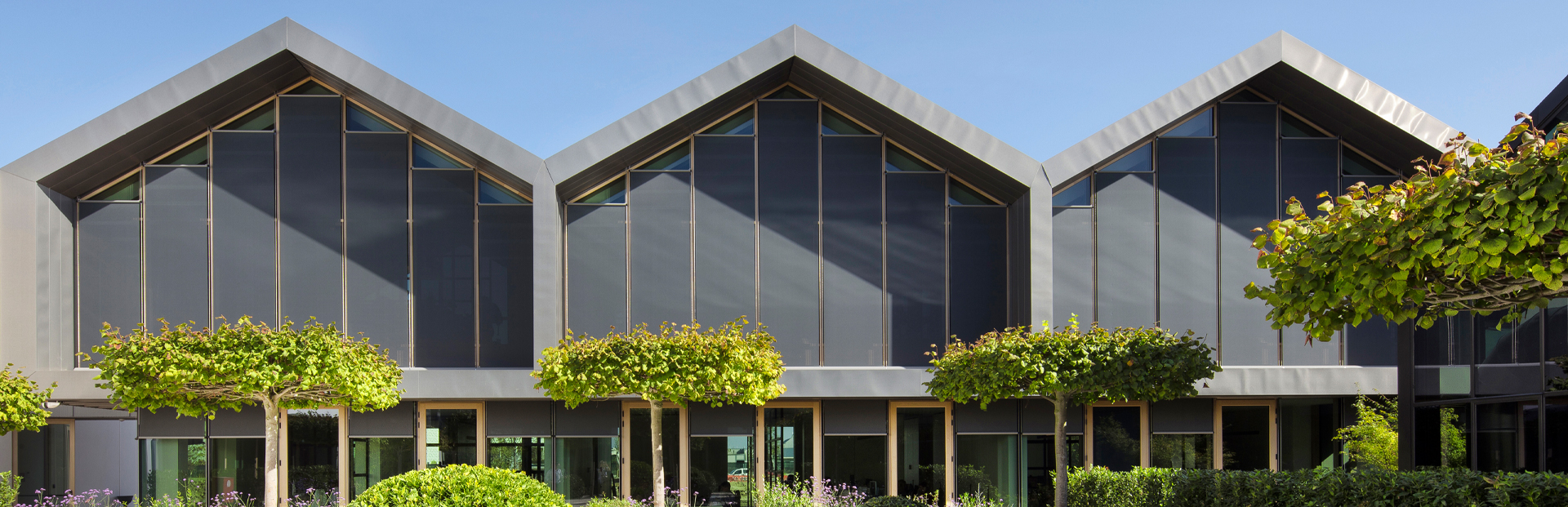 Tutti i sistemi a rullo sono automatizzati grazie ad una centralina apposita che gestisce l’apertura e chiusura delle schermature. Come un direttore d’orchestra, è il Sole che da il via al silenzioso movimento di salita o discesa dei sistemi. Il villaggio Davines è concepito e disegnato per ridurre al minimo l’uso di illuminazione artificiale. Grazie alle proprietà del tessuto filtrante Vuscreen Messina cod. 31808 color Antracite,  gli spazi interni sono caratterizzati da un eccellente comfort termico e visivo e un’illuminazione naturale e accogliente.