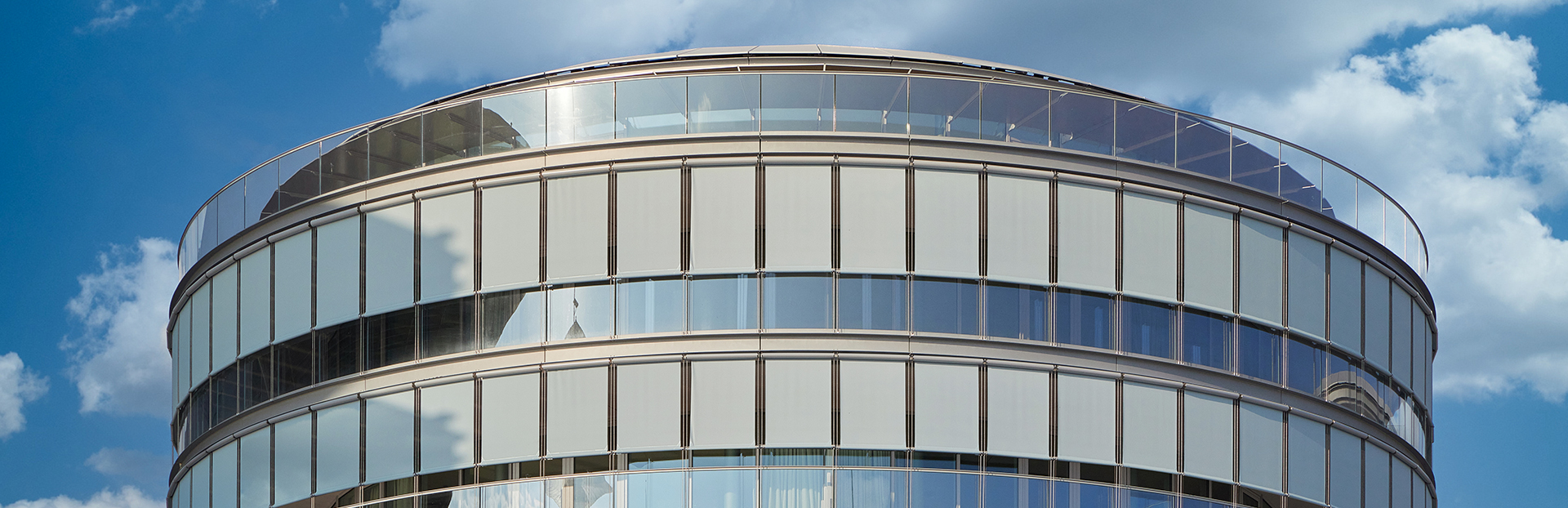 Tra le tende di facciata Resstende, spicca il modello Dallas 110, caratterizzato da un design esclusivo e un alto contenuto tecnico. Questo modello è studiato specificamente per applicazioni esterne e perfetto su facciate continue, diventando così parte integrante dell’architettura dell’edificio. Proprio per le sue consolidate performance, per schermare il complesso di edifici è stato scelto il modello Dallas 110 verticale con Traction Kit 60. Il dispositivo di trazione forzata è stato integrato per fornire un’efficace tensione al telo, infatti, grazie all’energia controllata dei suoi pistoni a gas posizionati all’interno del fondale tondo, il sistema assicura maggiore stabilità alle tende in ambiente esterno, contrastando efficacemente la potenza del vento.
