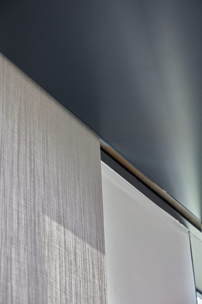Tra l’ampia gamma tessile disponibile, è stato scelto il tessuto Soltis Touch per le eccellenti proprietà solari e luminose: controlla efficacemente la radiazione solare e offre allo stesso tempo trasparenza e luce naturale. Infine, riduce il riverbero migliorando il comfort acustico degli occupanti. L’attenzione dello studio Pichler per i dettagli ha confermato questo tessuto anche dal punto di vista estetico.