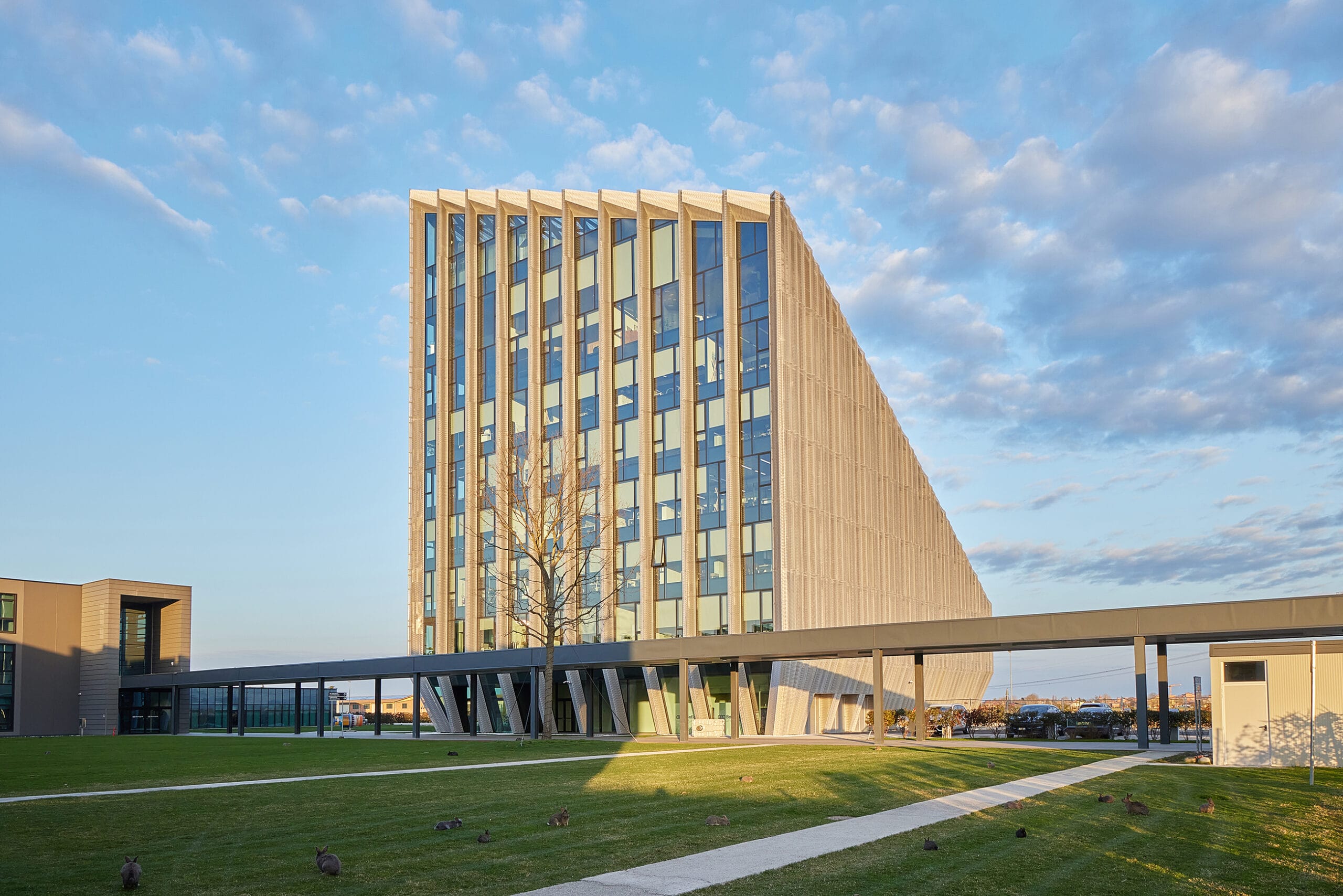 Progettato dallo Studio Peter Pichler Architecture, il nuovo quartier generale di Bonfiglioli rappresenta una testimonianza di design sostenibile nel settore industriale, identificando i valori culturali dell’azienda italiana. Grazie alla collaborazione con Resstende, l’edificio integra soluzioni avanzate di schermatura solare che contribuiscono al raggiungimento degli obiettivi di riduzione dell’impatto ambientale e di ottimizzazione delle prestazioni energetiche.