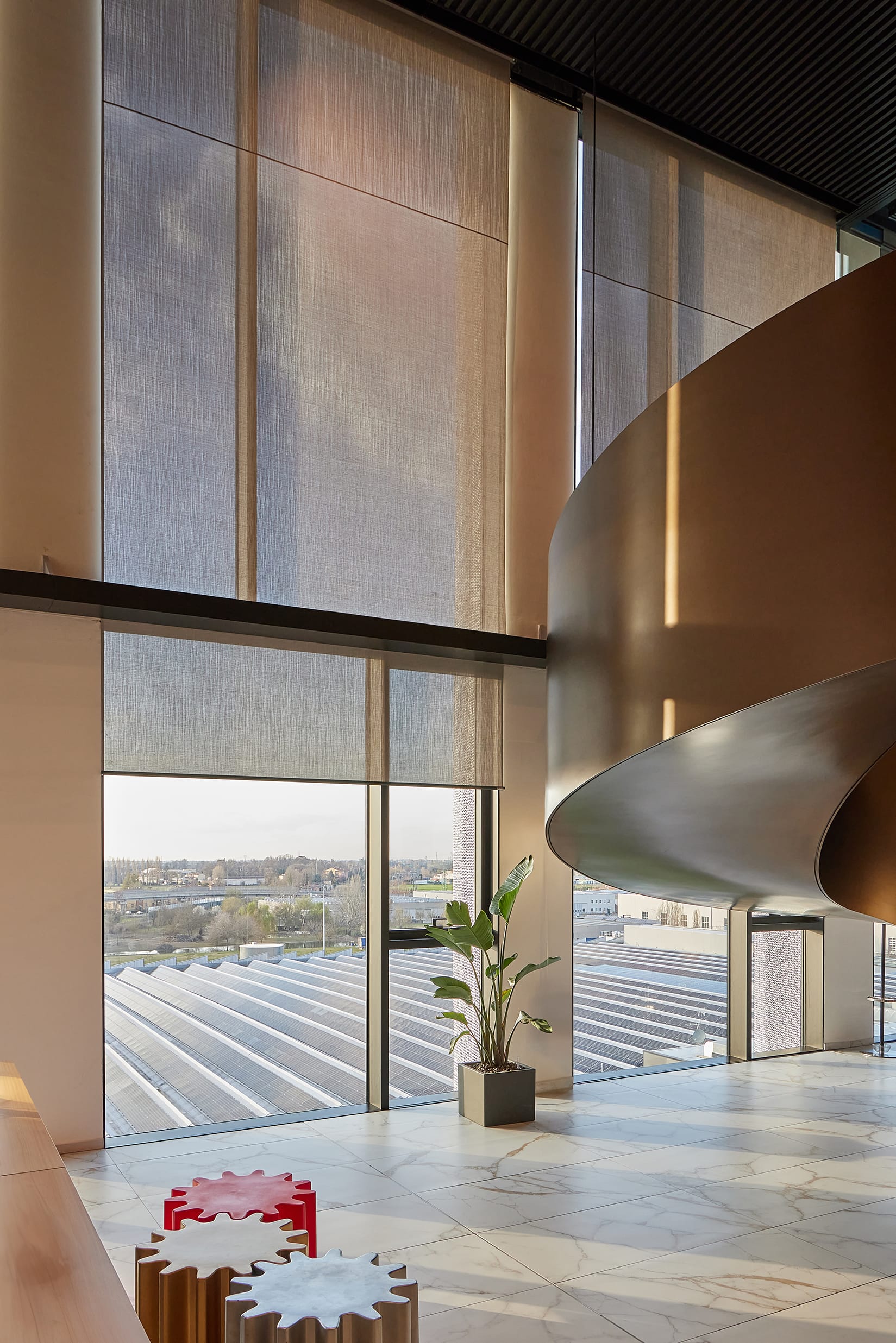 Resstende si è distinta come fornitore chiave per le schermature solari nel progetto del nuovo Headquarters Bonfiglioli a Calderara di Reno, Bologna. In particolare, nella realizzazione di tende tecniche a rullo, fornendo soluzioni innovative e di alta qualità per garantire comfort ed efficienza all’interno del prestigioso edificio.