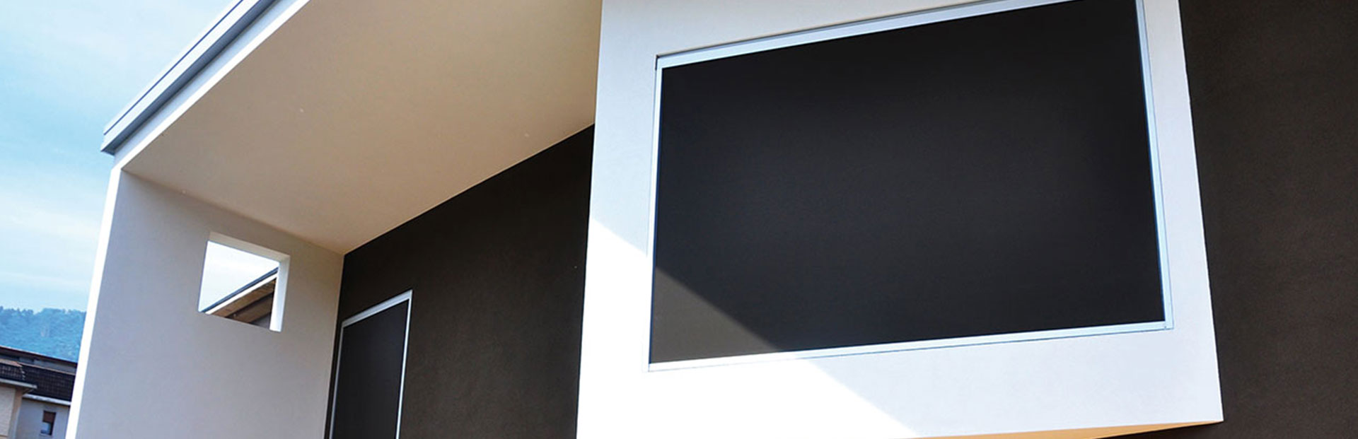 ZIP è dotato di un sistema brevettato che chiude completamente gli spazi laterali, permettendo un perfetto scorrimento e trattenimento in guida del telo, anche su grandi dimensioni. Elevata tenuta al vento, grazie alla distribuzione equilibrata del tessuto teso lungo tutta la cerniera verticale.