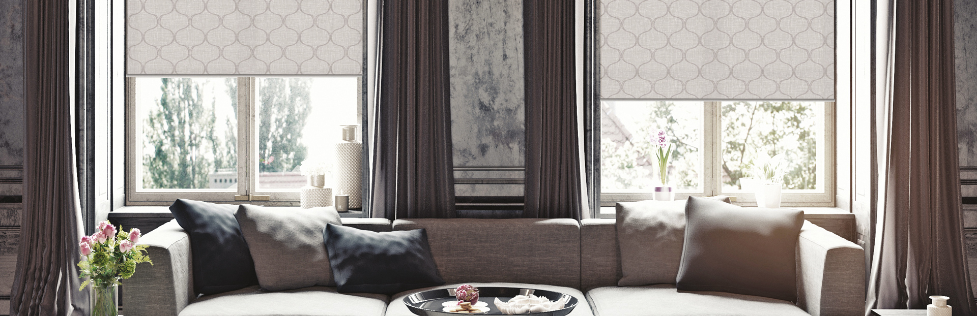 Dettaglio di un tessuto di una tenda da interni bianca ricamata in grigio